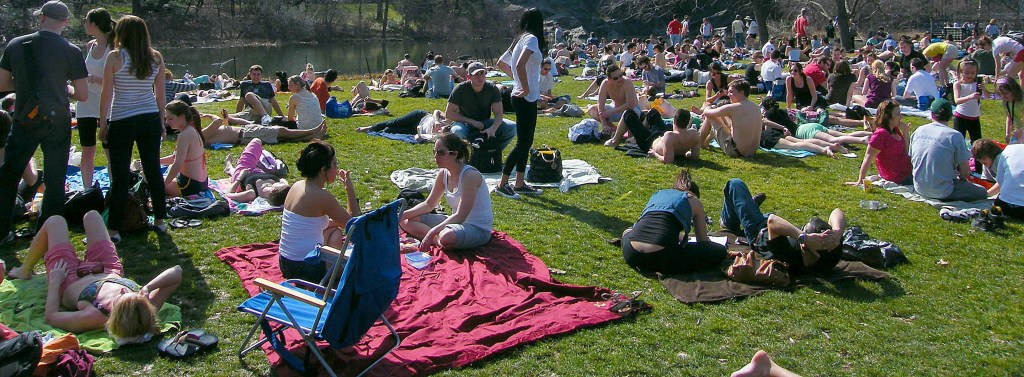 Bring a blanket and your own food and drink. Find a space, set out your blanket and introduce yourselves to the people around you.